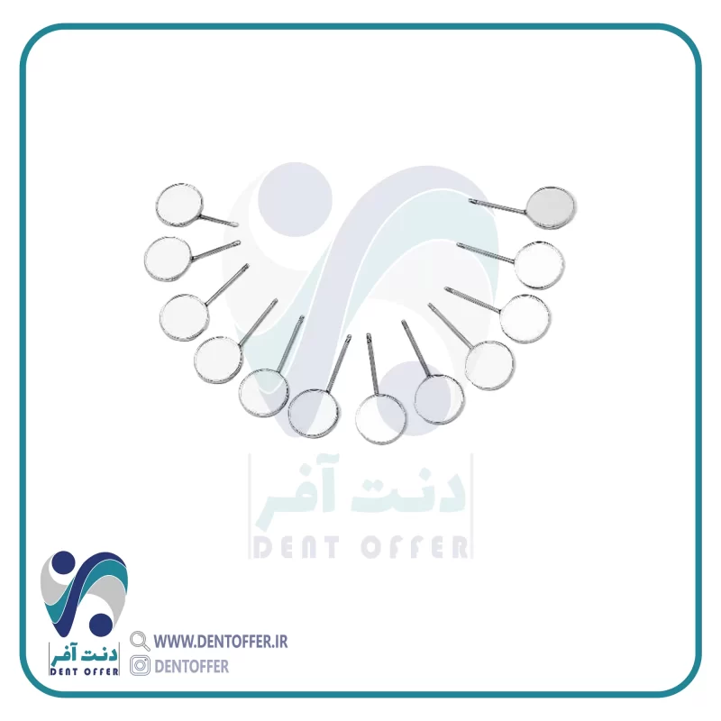 - آینه دندانپزشکی: این ابزار کلیدی برای مشاهده نواحی تاریک و غیرقابل دسترس مانند پشت دندانها طراحی شده است. آینههای باکیفیت ما دارای سطح ضدبخار و قابلیت انعکاس دقیق نور هستند تا دیدی واضح و کامل به شما بدهند.