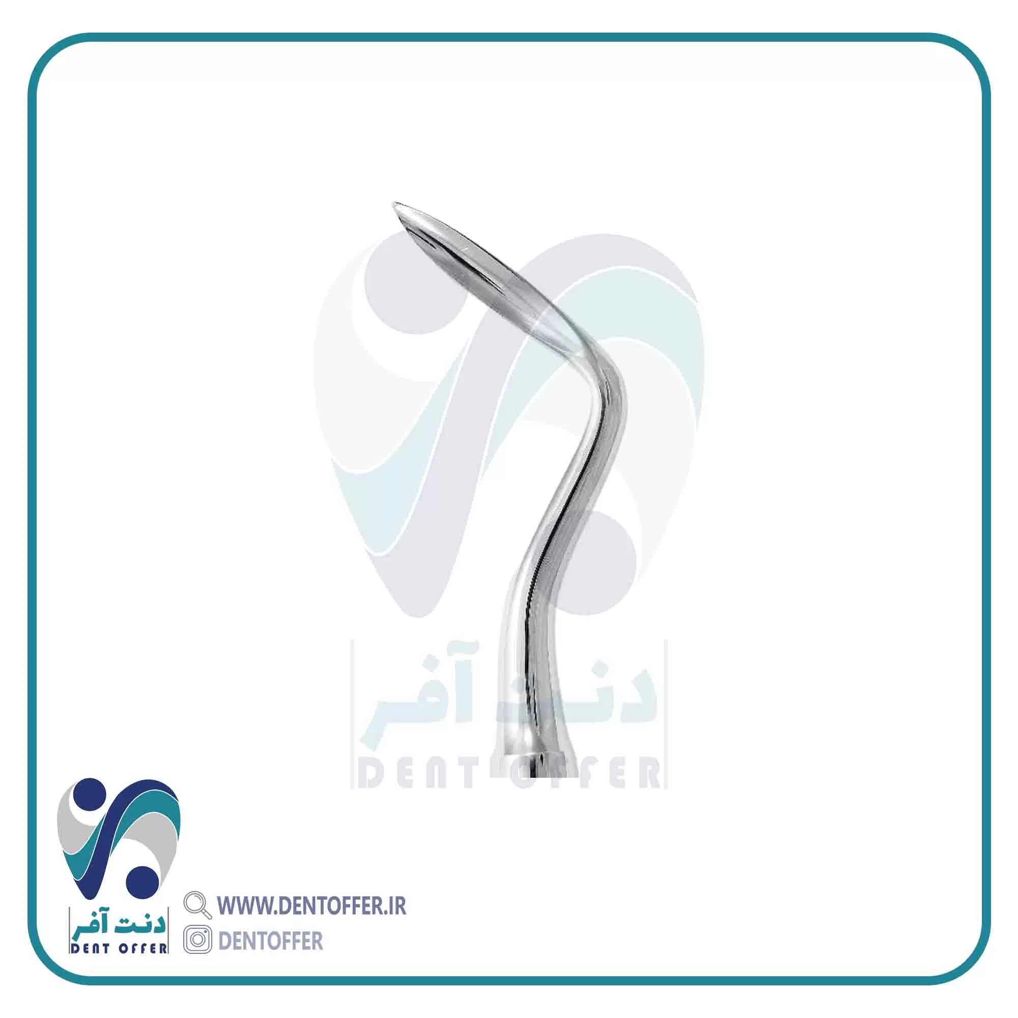 ویژگی اصلی آن، نوک باریک و تیز است که به آن اجازه می‌دهد بدون تخریب بیش از حد استخوان، به عمق ساکت دندان نفوذ کند. جهت‌گیری “راست” در این مدل، برای کار در سمت راست دهان یا ریشه‌های قدامی (جلویی) که نیاز به زاویه خاصی دارند، بهینه شده است.